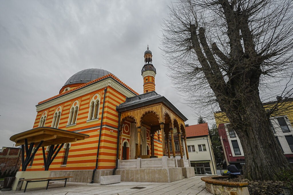 Behram-begova, poznata i kao Atik džamija, jedan od najprepoznatljivijih simbola ovog grada, i stoljećima je bila duhovno i obrazovno središte grada, ali i svjedok njegove višestoljetne historije. Uz prepoznatljivu munaru i raskošnu fasadu, posebno impresivna je unutrašnjost Šarene džamije. Njena izrazito bogata ornamentika, sklad boja i detalja svakog posjetioca ostavlja bez daha, a sve to je čini jedinstvenim arhitektonskim biserom Bosne i Hercegovine. ( Samır Jordamovıc – Anadolu Agency )